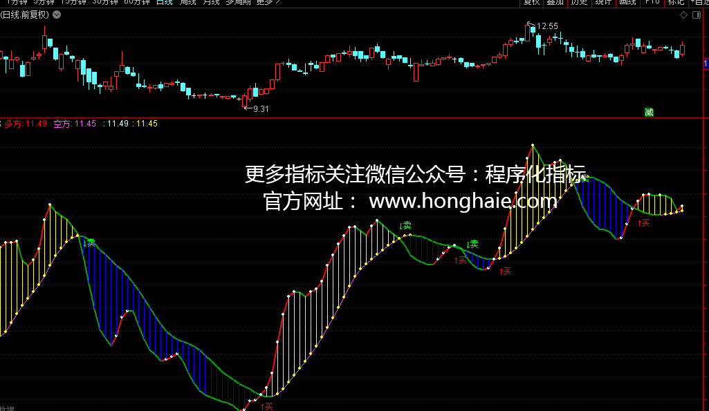 DRAWTEXT(CROSS(空方,多方),多方 * 1.01,'↓卖')COLOR00FF00;