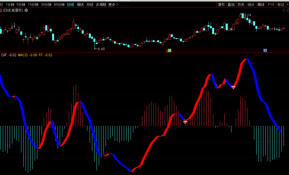 FF:REF(DIF,1);{需要编写选股关注微信公众号:程序化指标}
