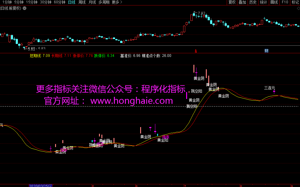 短期线:(19*均值+19*REF(均值,1)+18*REF(均值,2)+17*REF(均值,3)+16*REF(均值,4)+15*REF