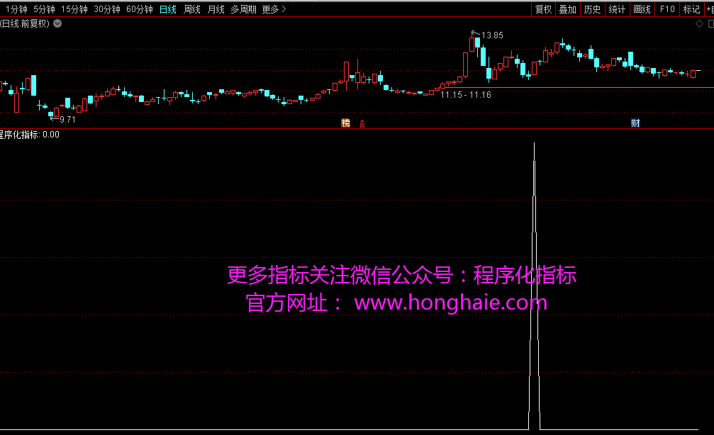 程序化指标:ZF>1.05 AND 阳柱>0.04 AND 均线上方>0.01 AND 上影<0.015 AND RNZF