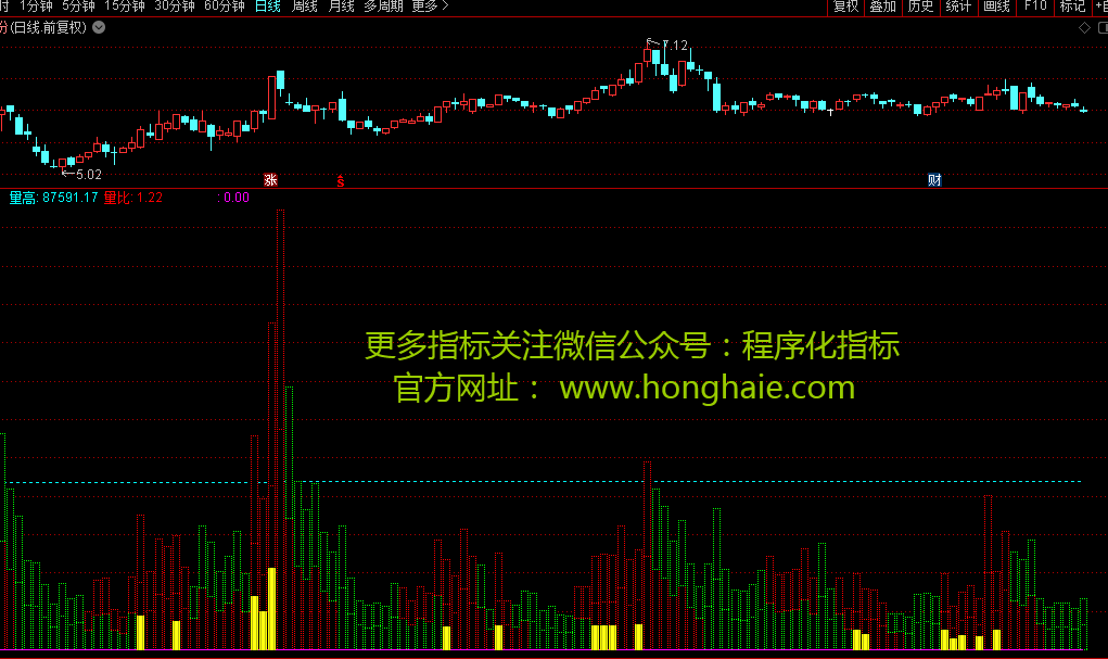 量高:HHV(V,120)*0.382,COLORCYAN,DOTLINE;