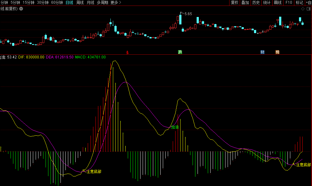DRAWTEXT(CROSS(DIF,DEA)AND DEA<0,DEA,'↖注意底部')COLORYELLOW;