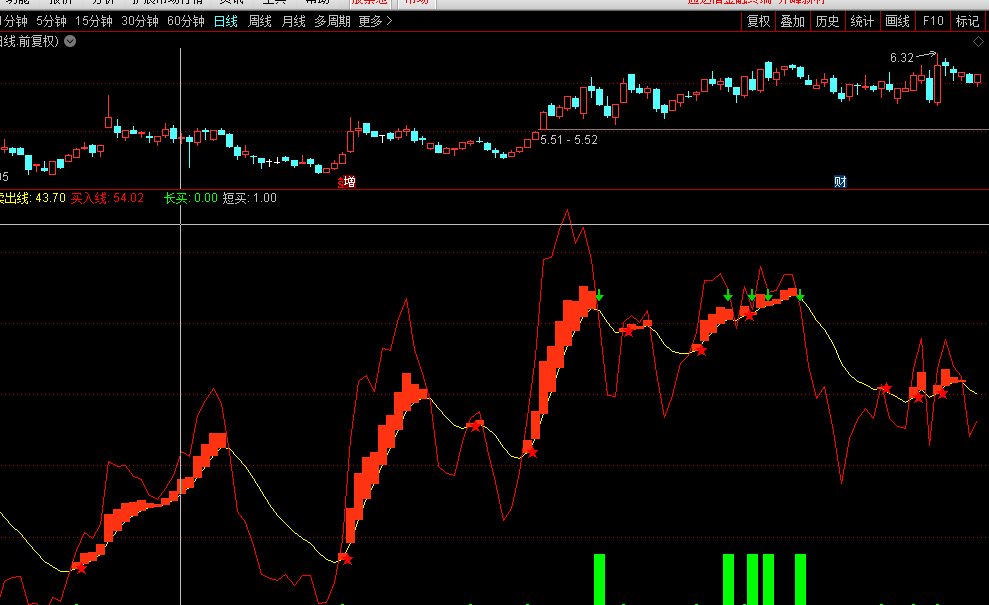 DRAWTEXT(短买,卖出线,'★'),COLORRED;