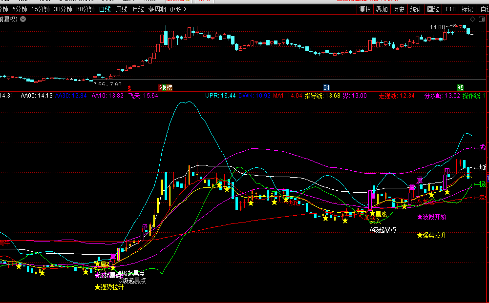 DRAWTEXT(起爆,L*0.99,'↖暴涨'),COLORYELLOW,LINETHICK3;