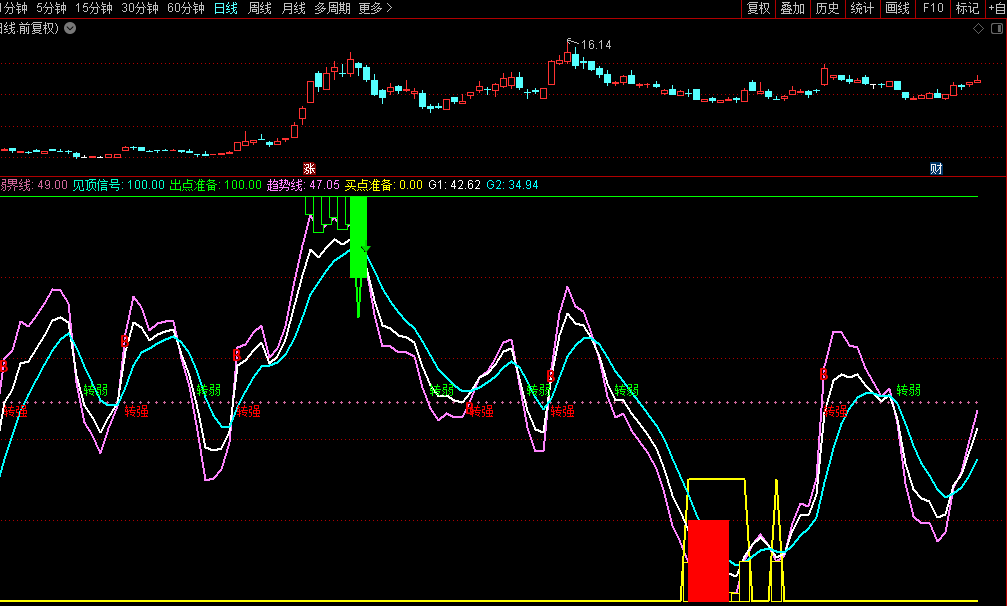 DRAWTEXT(CROSS(49,趋势线),52,'转弱'),COLORGREEN;