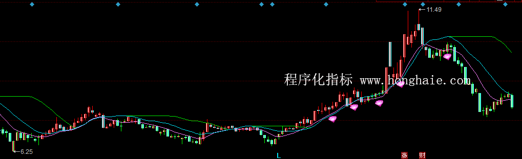 趋势:LLV(MA(H,13),1),colorred,LINETHICK1;