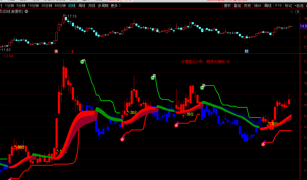 DRAWTEXT_FIX(1,0.62,0,0,'☆微信公众号:(程序化指标) ☆'),COLORRED;