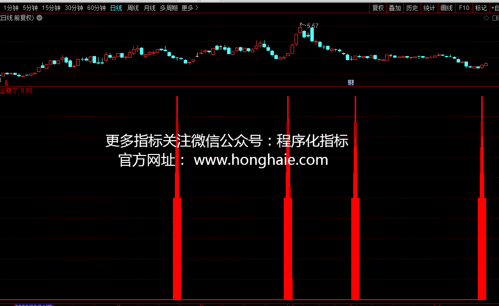 程序化指标选股:=IF(CROSS(程序化指标,0),1,0),STICK,COLORRED;