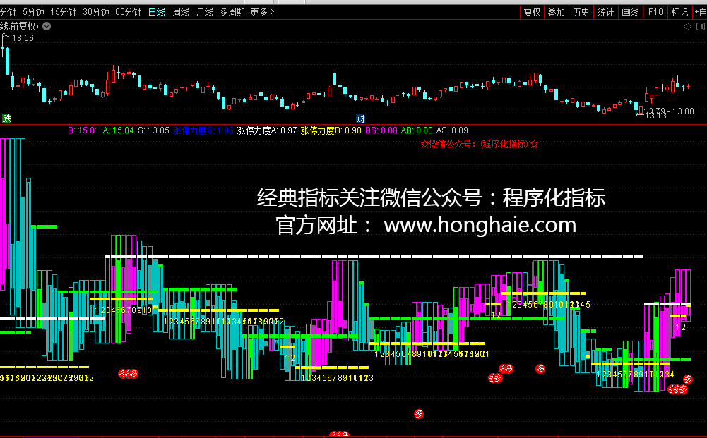 DRAWTEXT_FIX(1,0.62,0,0,'☆微信公众号:(程序化指标) ☆'),COLORRED;