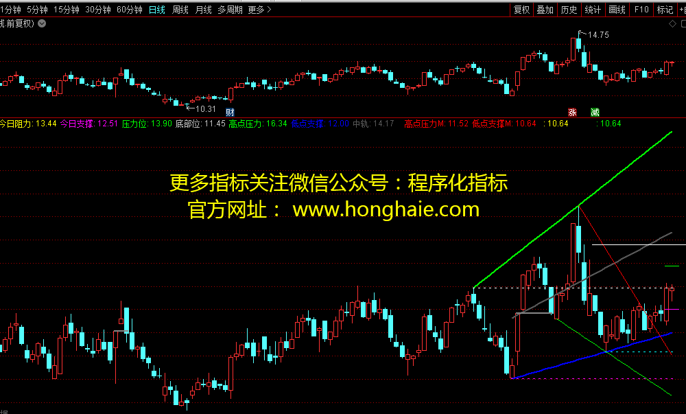 ZGEND:=CONST((高点压力+低点支撑)/2);