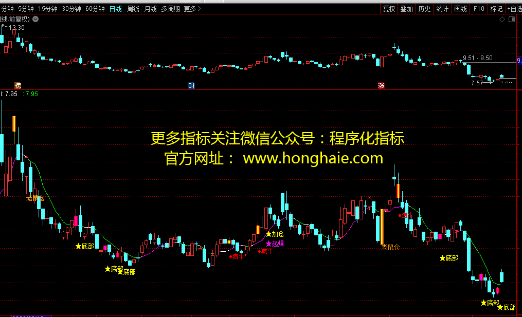 DRAWTEXT((AB = 1),(LOW * 0.95),'★底部'),COLORYELLOW;