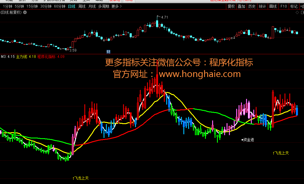 DRAWTEXT_FIX(1,0.02,0,0,'☆微信公众号:(程序化指标) ☆'),COLORRED;