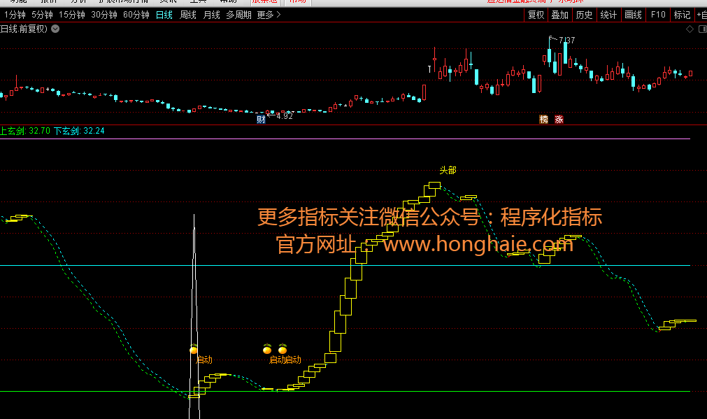 NOTEXT6:(CROSS(上玄剑,下玄剑) AND 上玄剑<35 AND 启动点)*66,COLORFFFFFF;