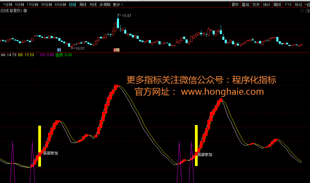 DRAWTEXT(CROSS(AA,22) AND BB<AA,AA-2,'*底部参加');