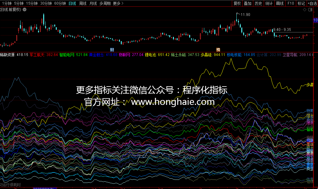 DRAWTEXT_FIX(1,0.02,0,0,'☆微信公众号:(程序化指标) ☆'),COLORRED;