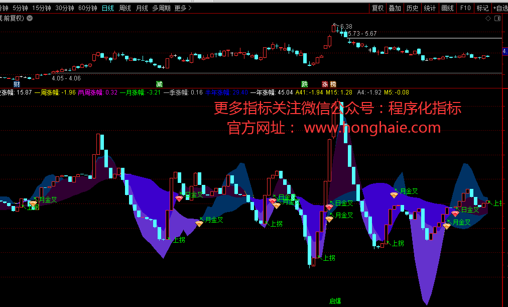 A1:=(历史涨幅)-MA(历史涨幅,12),COLORWHITE;