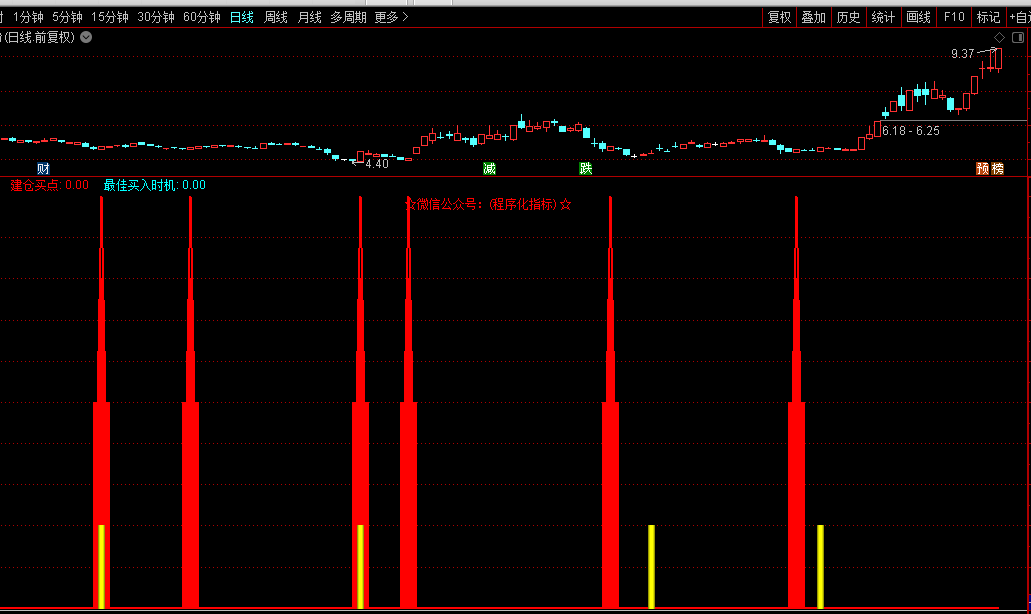 DRAWTEXT_FIX(1,0.42,0,0,'☆微信公众号:(程序化指标) ☆'),COLORRED;