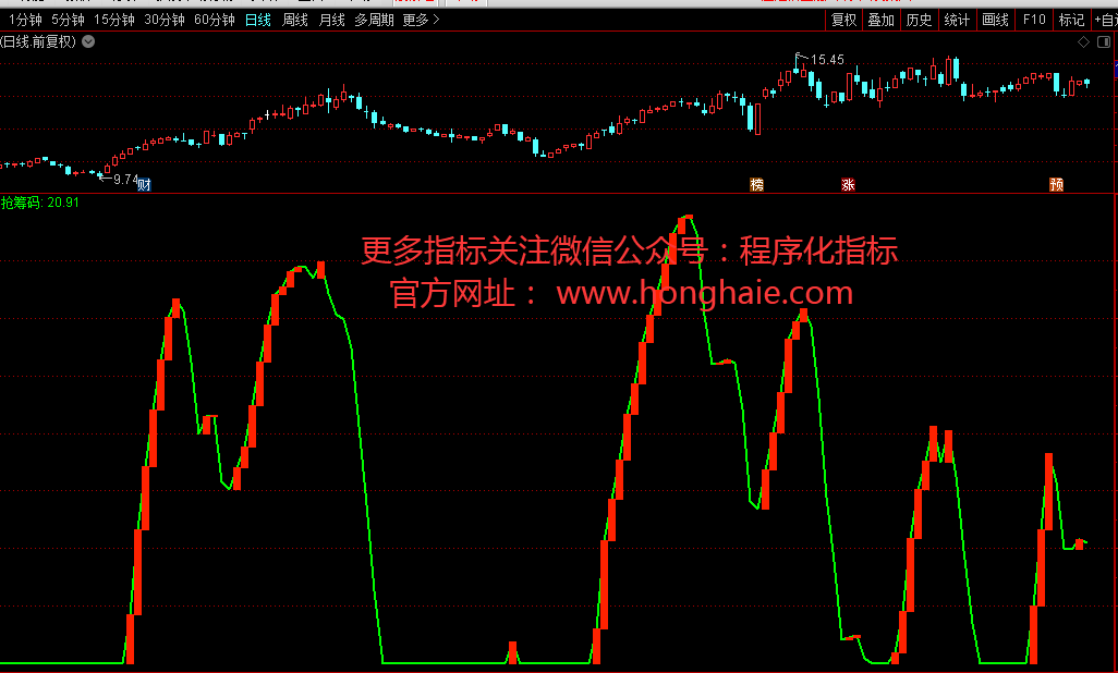 抢筹码:IF(B6 > 60,B6-60,0),COLOR00FF00,LINETHICK2;
