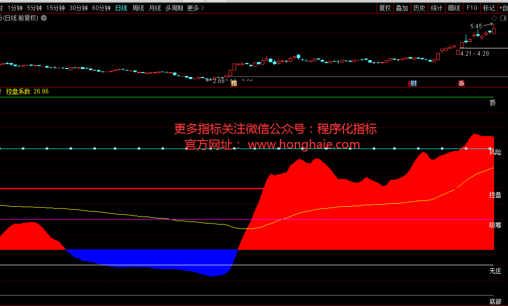 DRAWTEXT(CURRBARSCOUNT=2,18,'控盘');