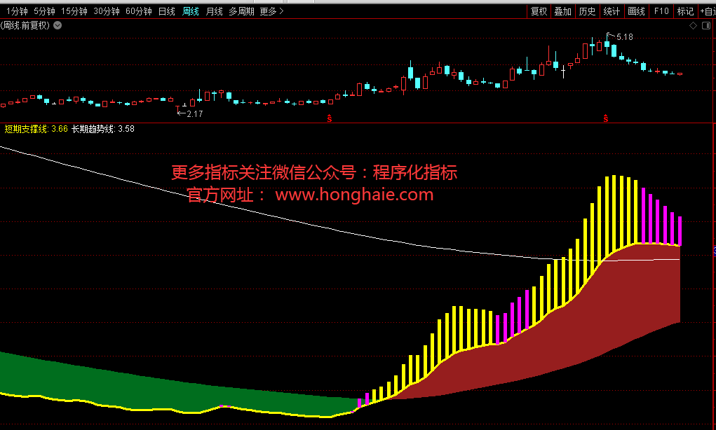 长期趋势线:EMA(DDFF1,程序化指标),COLORWHITE;