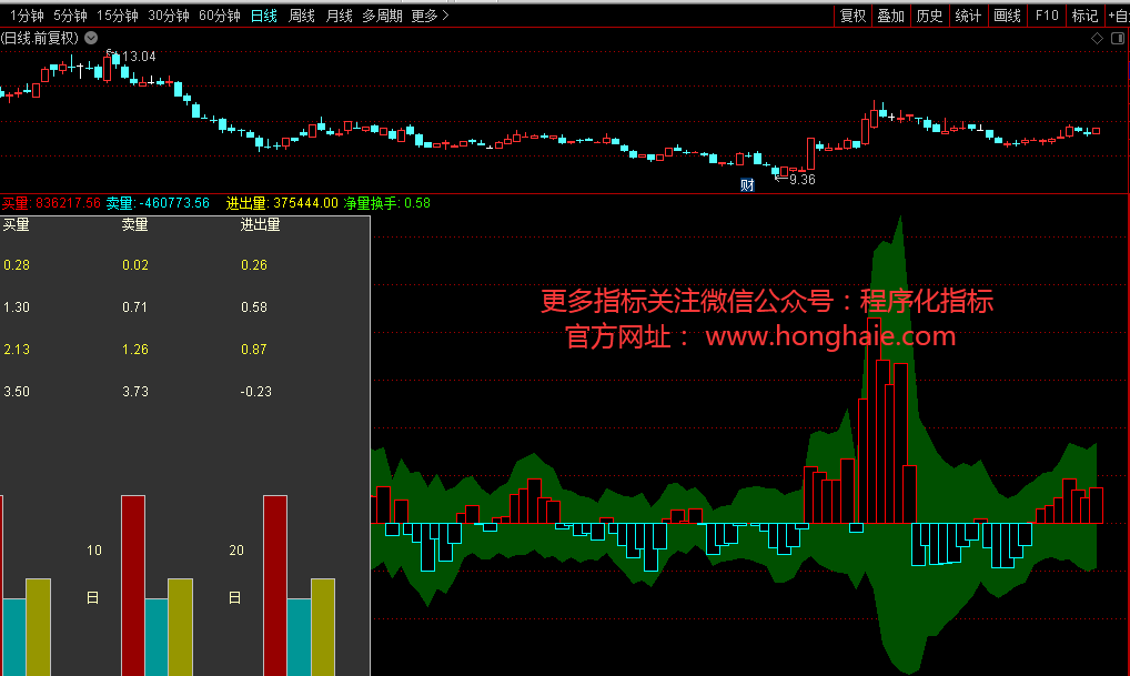 DRAWTEXT_FIX(1,0.25,0,0,'进出量'), COLORDDFFFF;