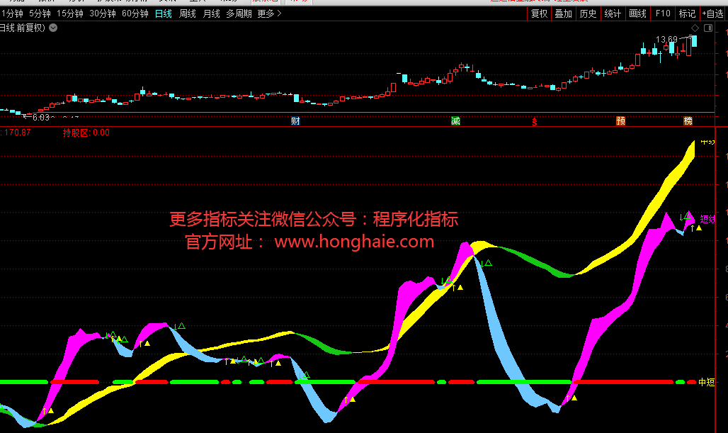 DRAWTEXT(ISLASTBAR,持股区,' 中短线多空'),COLORYELLOW;