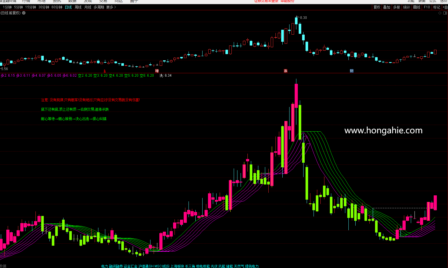 DRAWTEXT_FIX(1,0.12,0.15,0,'底下还有底,顶上还有顶 →右侧交易,追涨杀跌'),COLORGREEN;