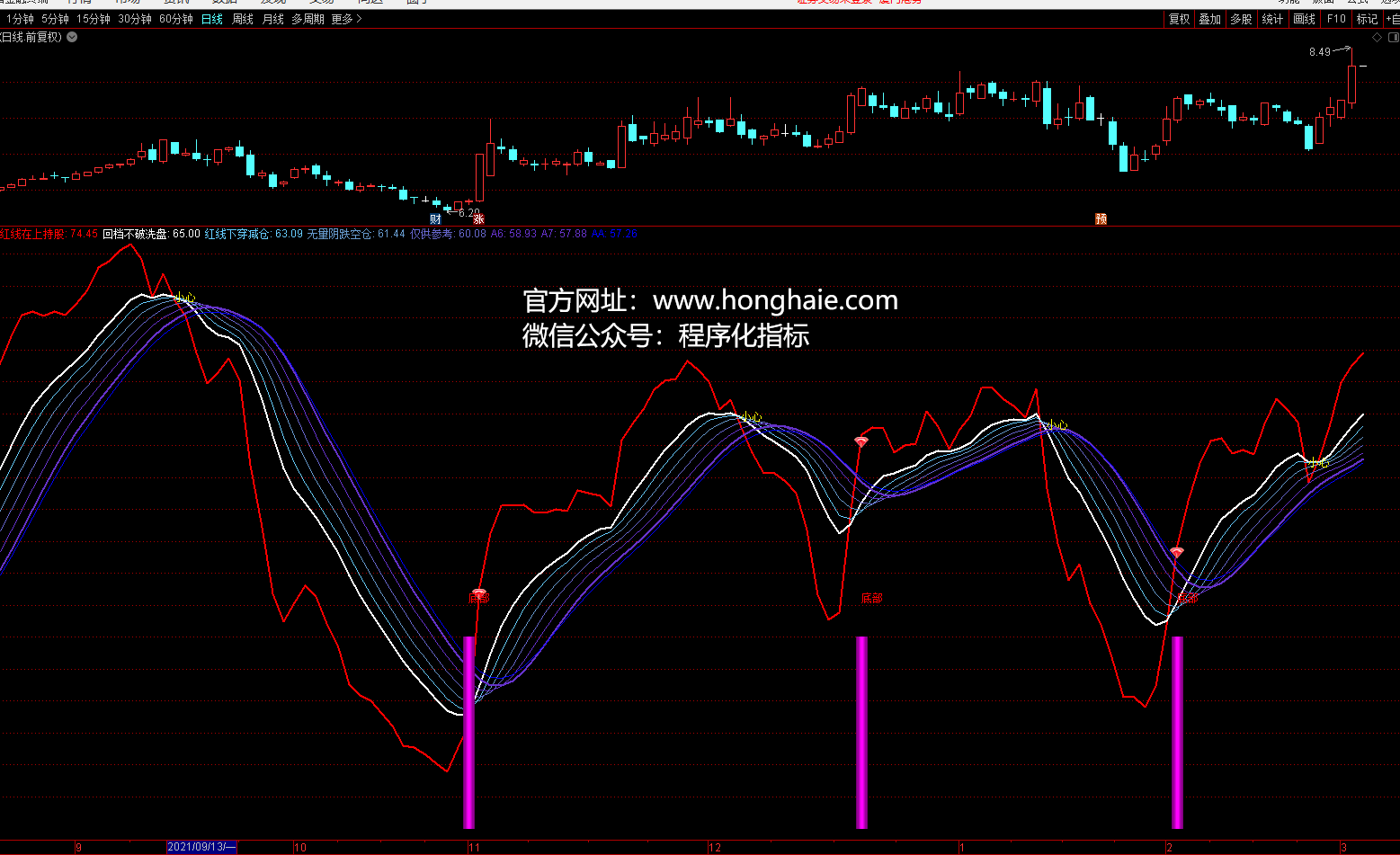 红线下穿减仓:EMA(回档不破洗盘,3),COLORFFCC66;