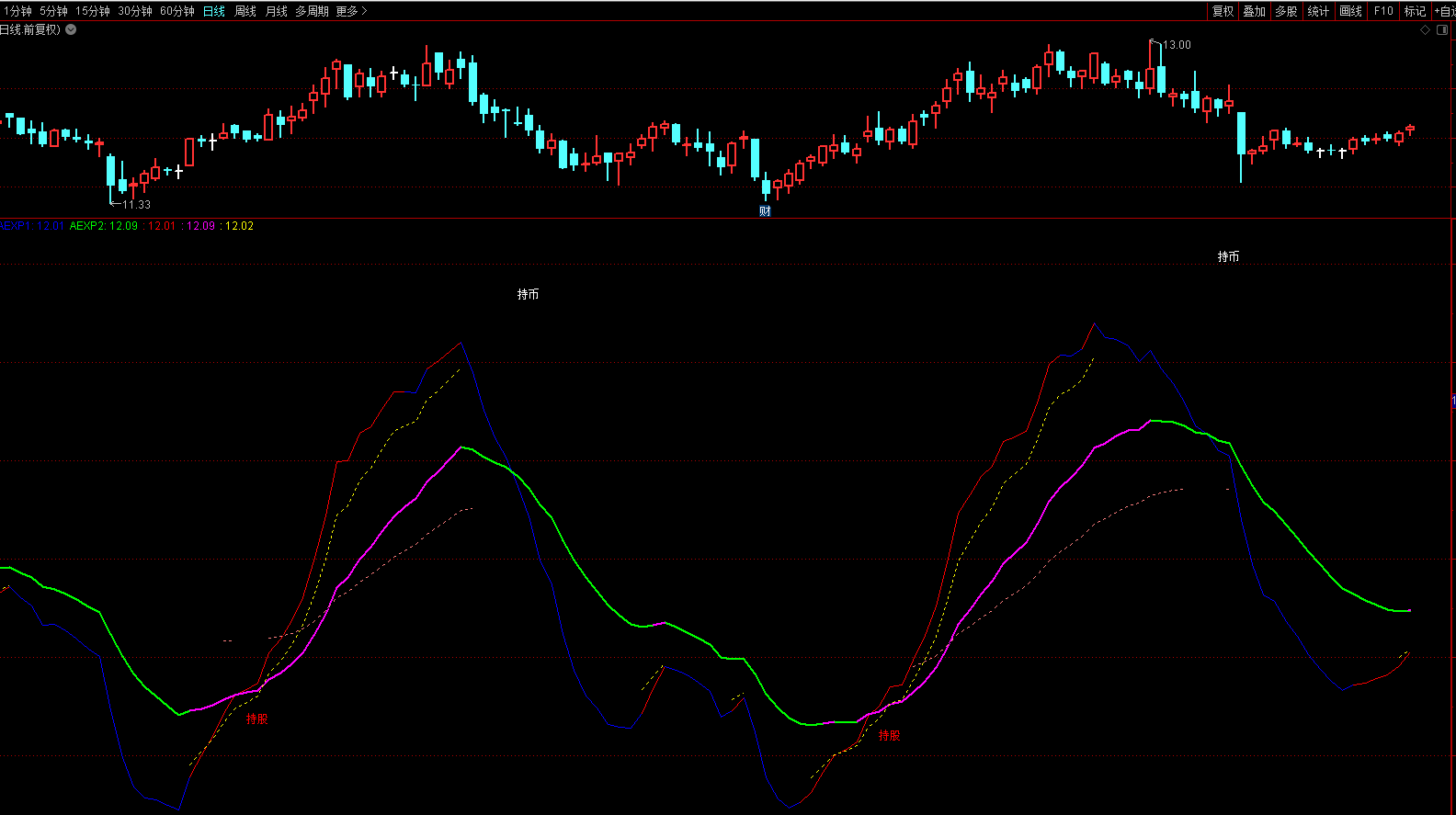 AEXP2:EXPMA(CLOSE,M2)COLORGREEN,LINETHICK2;