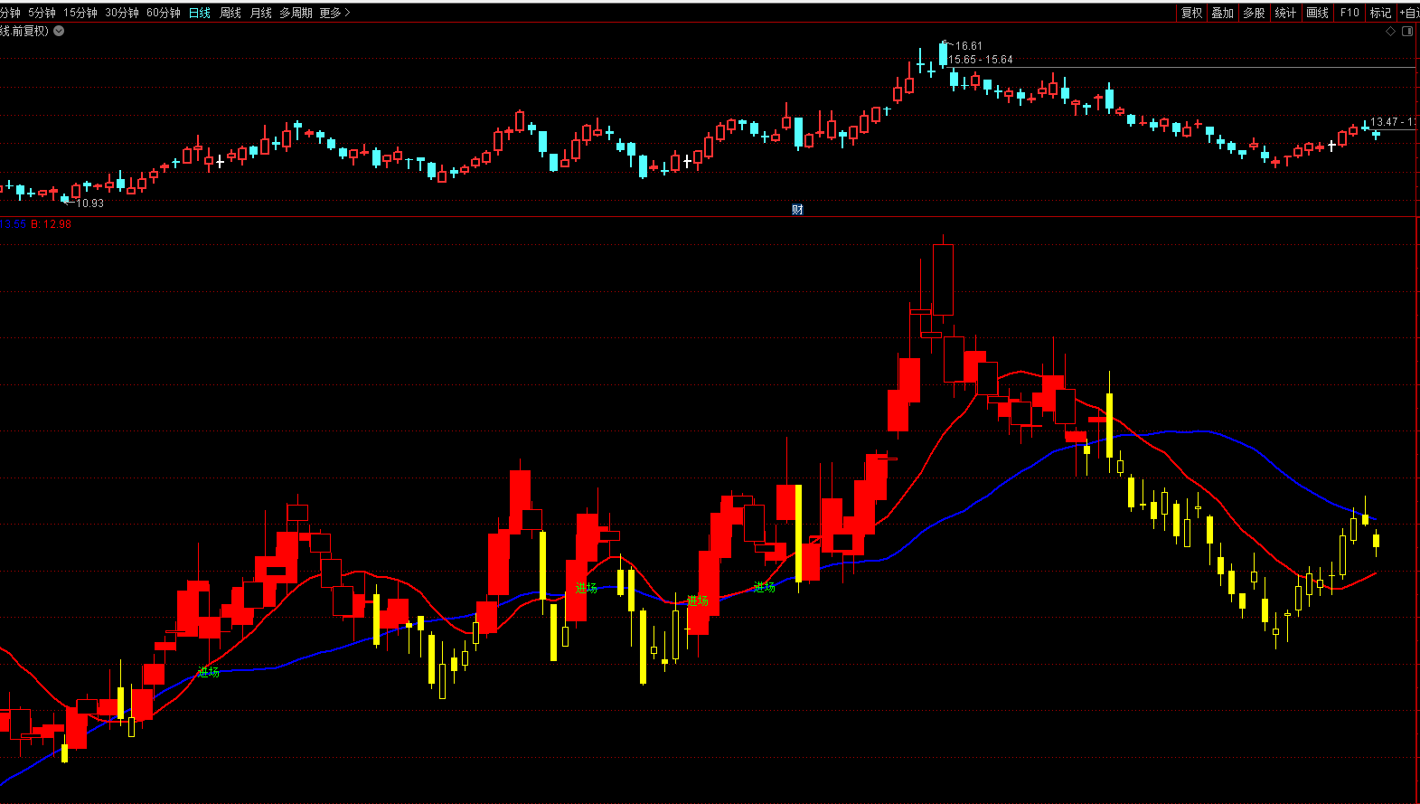 DRAWTEXT(CROSS(B,A),B,'进场'),COLORGREEN,LINETHICK2;