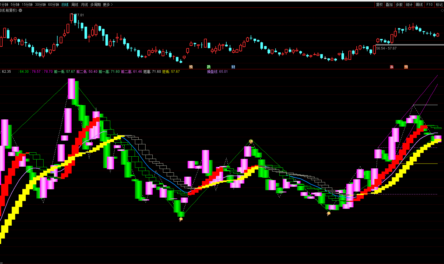 前二低:REF(L,BARSLAST(XX)),COLORFF66FF,DOTLINE,LINETHICK1;