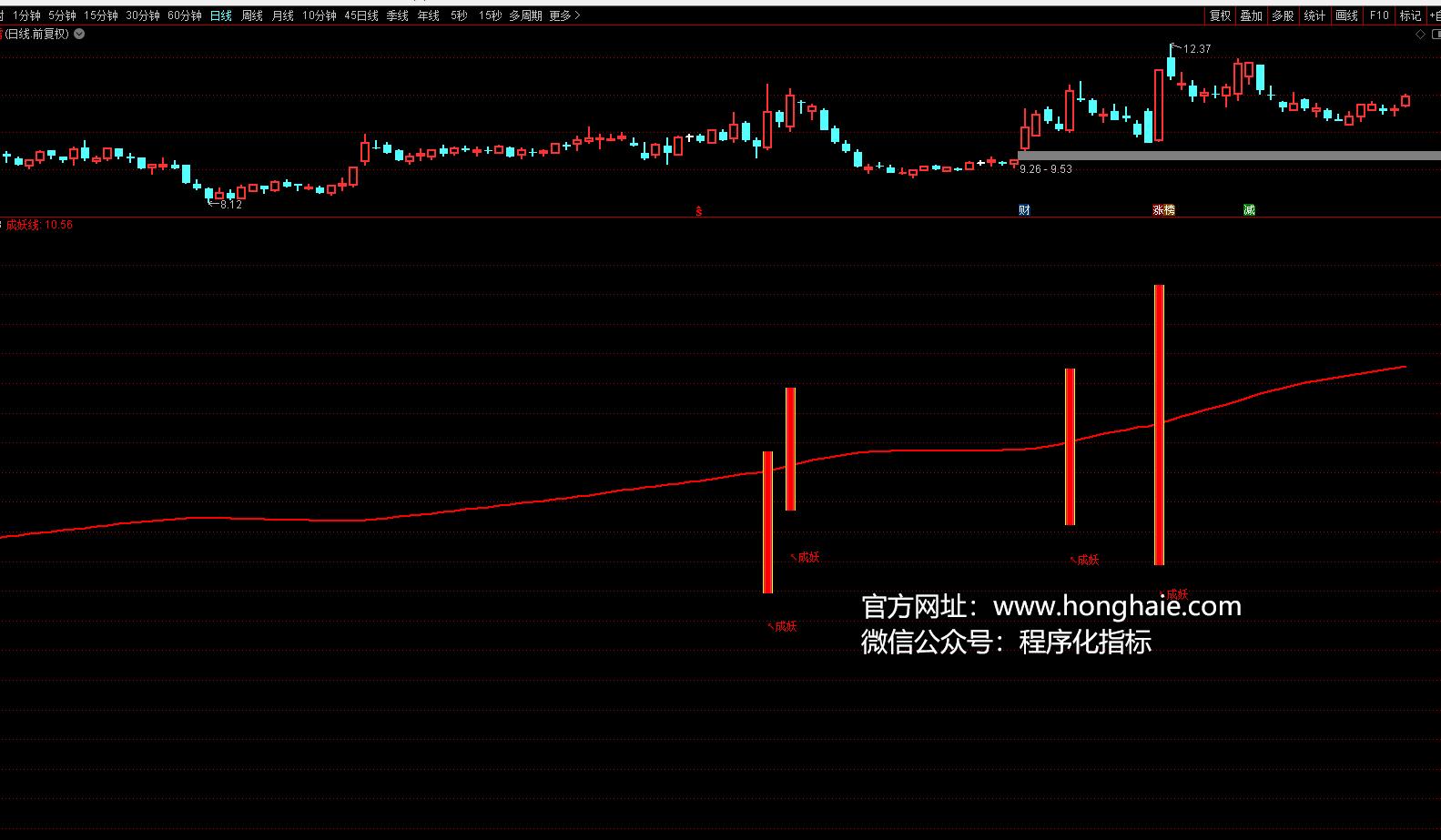 DRAWTEXT(选股,L*0.98,'↖成妖'),COLORRED;