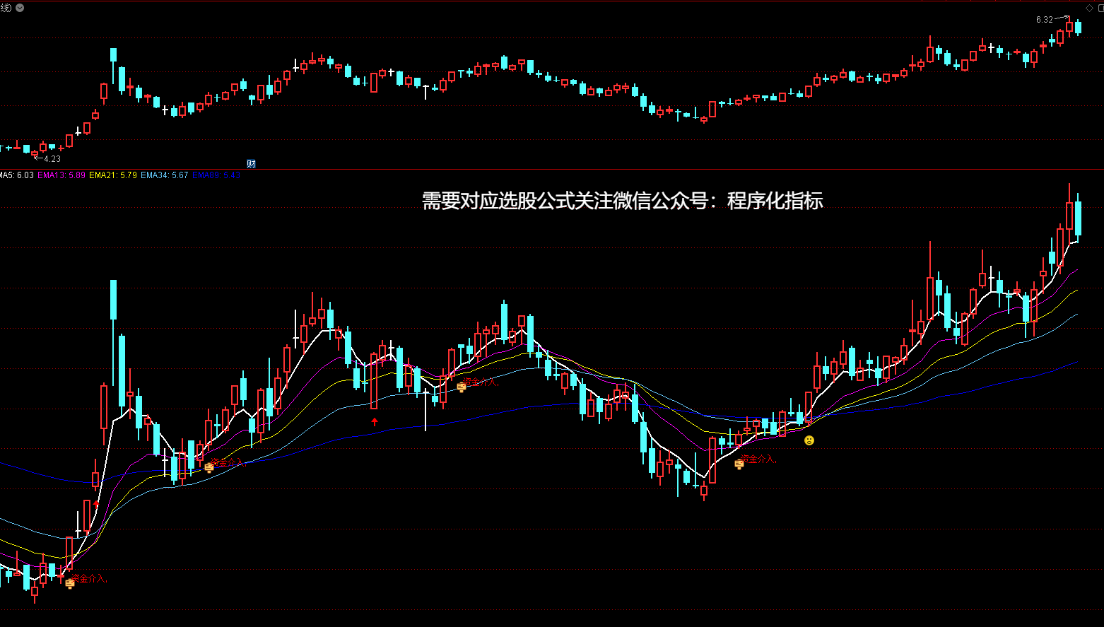 DRAWTEXT_FIX(1,0.59,0,0,'☆微信公众号:(程序化指标) ☆'),COLORRED;
