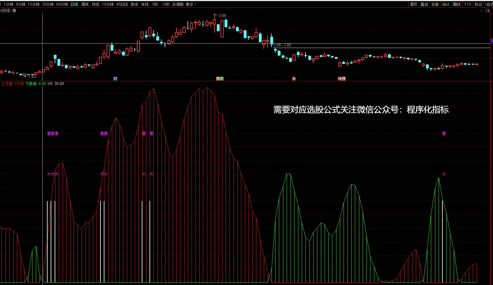 短线跟踪:=IF(N1A<N2A,N1A+1,0),COLORFFFFFF,LINETHICK1,LINESTICK;
