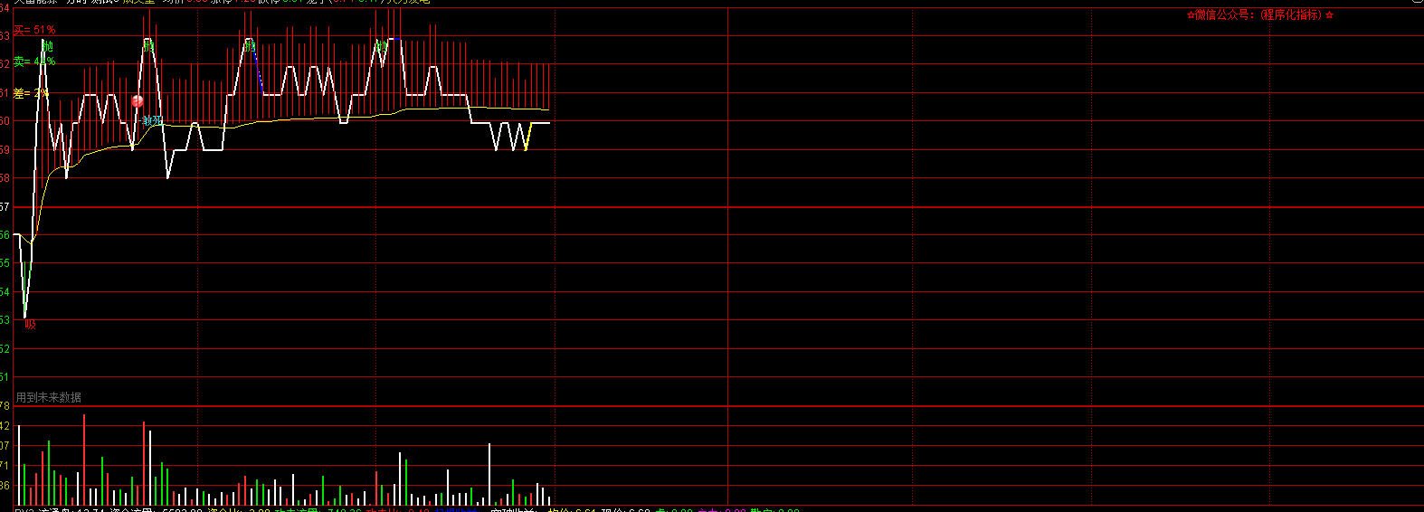 DRAWTEXT_FIX(1,0.82,0,0,'☆微信公众号:(程序化指标) ☆'),COLORRED;