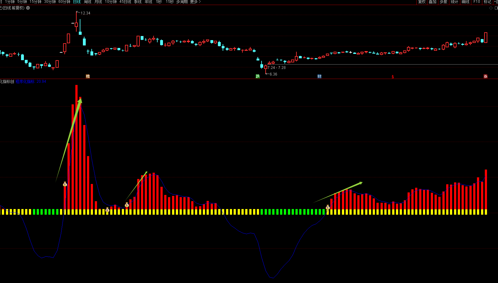 程序化指标:EMA(潜龙突破,3),COLORBLUE,LINETHICK1;