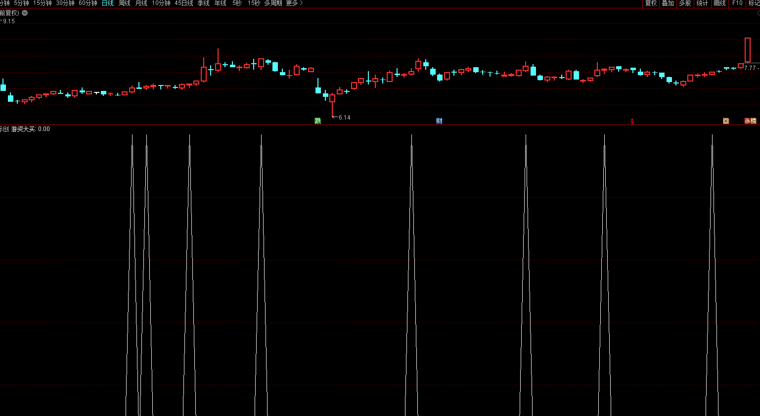 游资大买:BARSLASTCOUNT(VAR3>REF(VAR3,1) AND MAC3>REF(MAC3,1) AND MACD>0)=1;