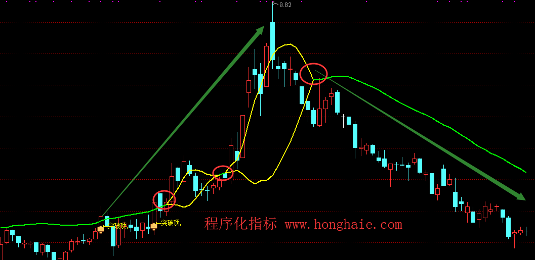 DRAWTEXT(XGP,O*1.01,' ←突破顶,'),COLORYELLOW;