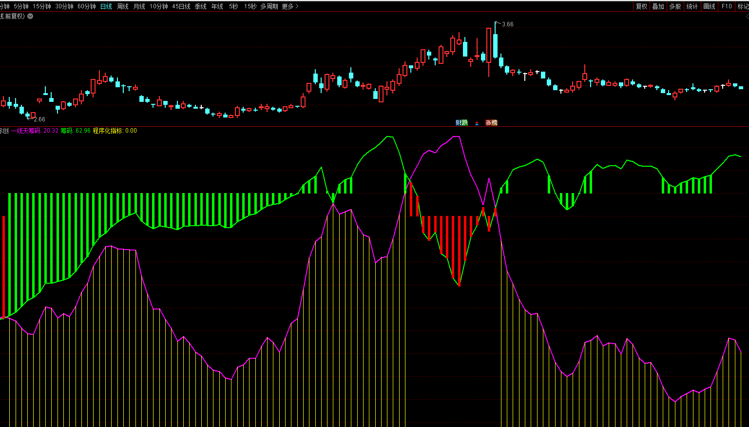 DRAWTEXT(一线天 ,11 ,'程序化指标' ) ,COLORYELLOW;