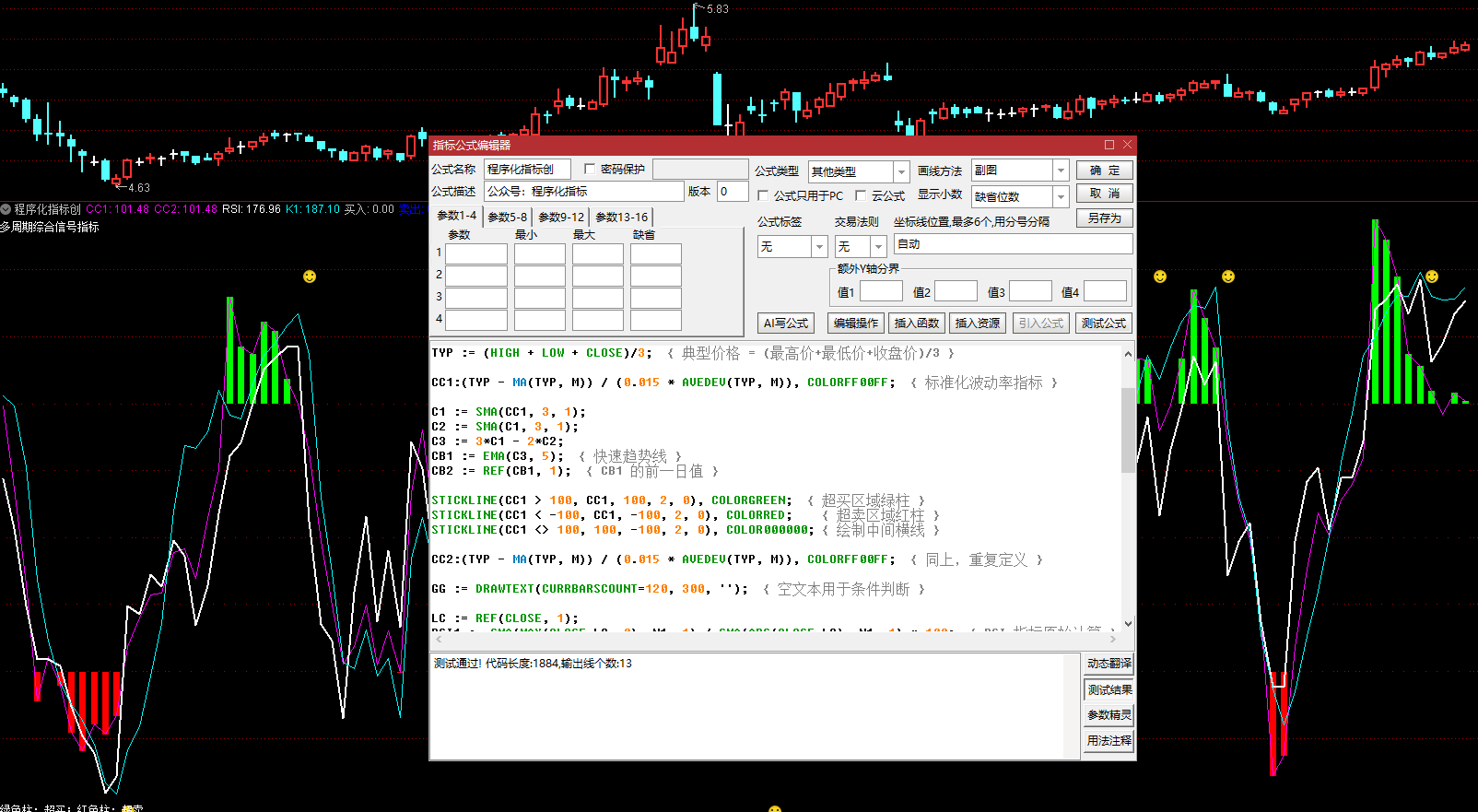 CC2:(TYP - MA(TYP, M)) / (0.015 * AVEDEV(TYP, M)), COLORFF00FF; { 同上,重复定义 }