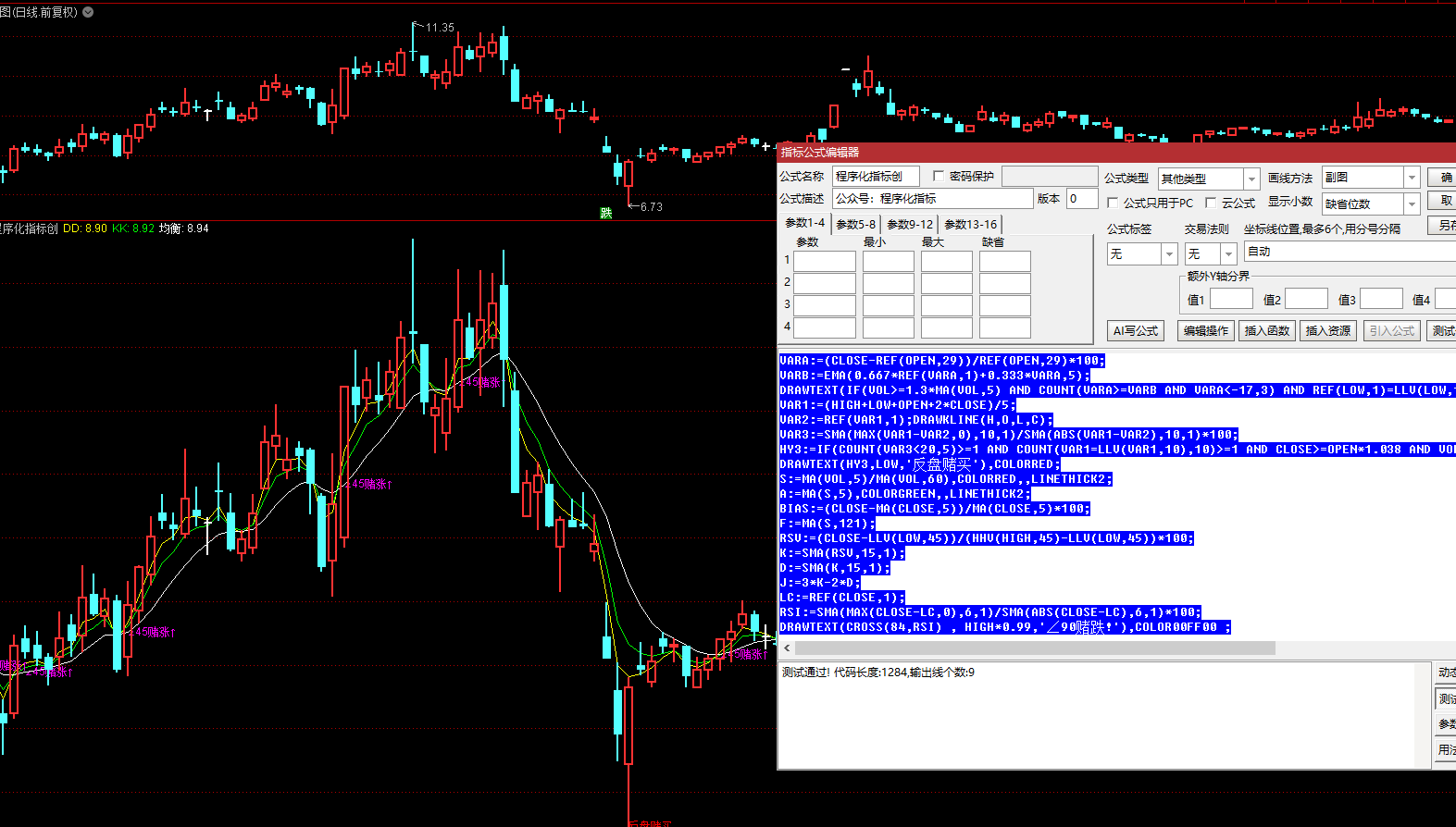 DRAWTEXT(CROSS(84,RSI) , HIGH*0.99,'∠90赌跌!'),COLOR00FF00 ;