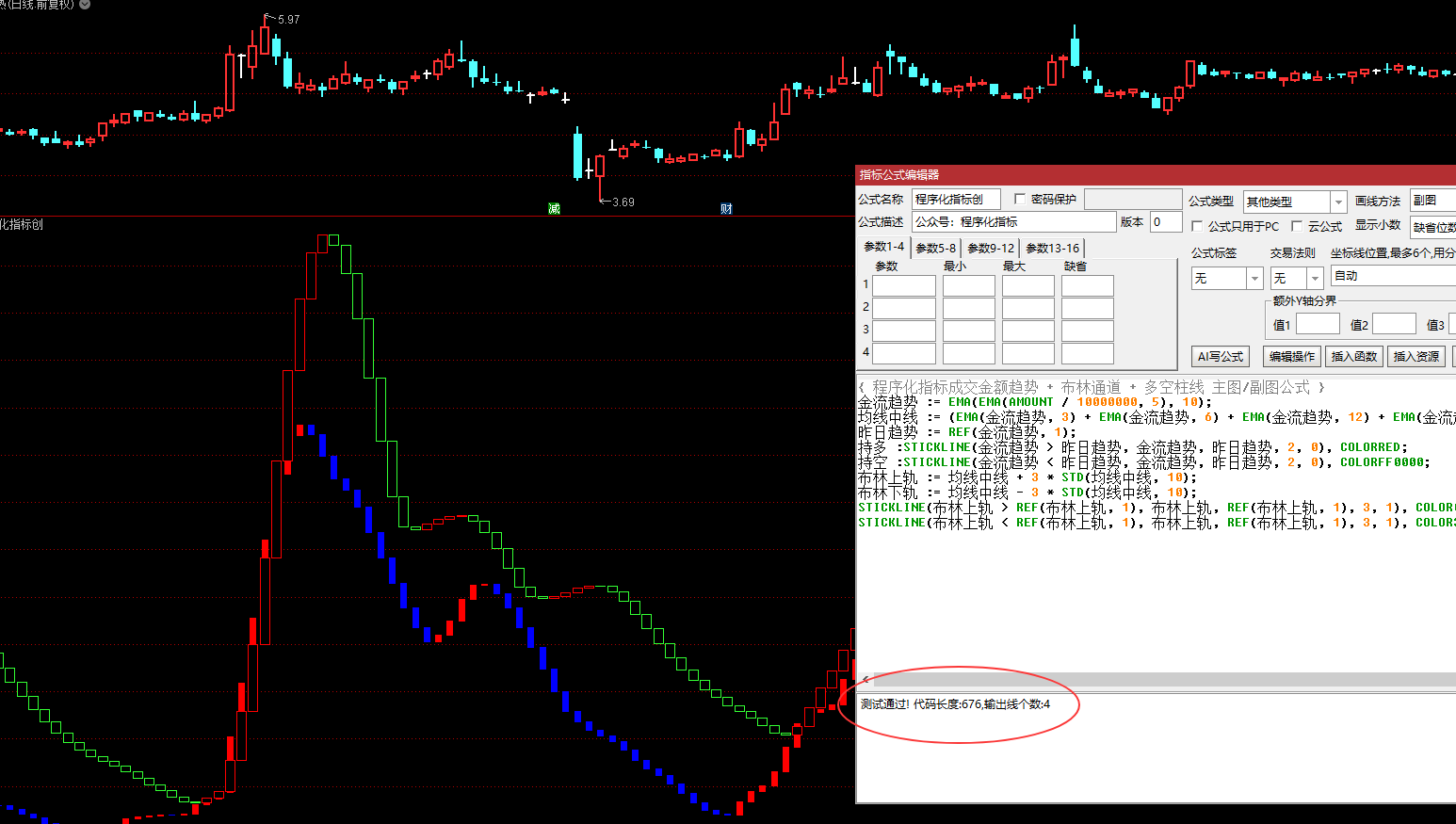{ 程序化指标成交金额趋势 + 布林通道 + 多空柱线 主图/副图公式 }