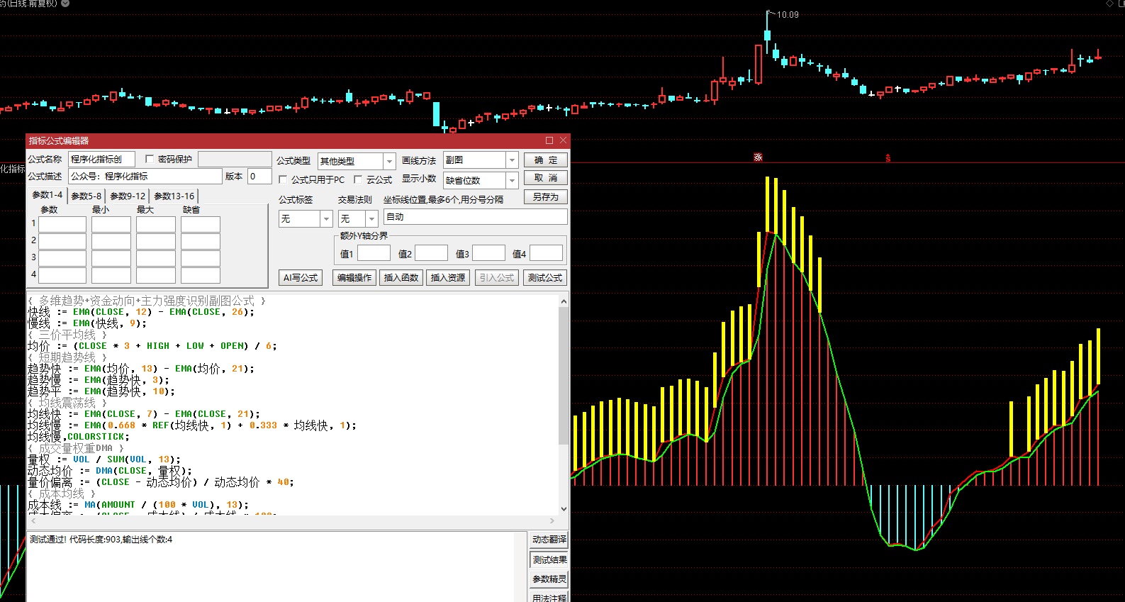 均线慢 := EMA(0.668 * REF(均线快, 1) + 0.333 * 均线快, 1);