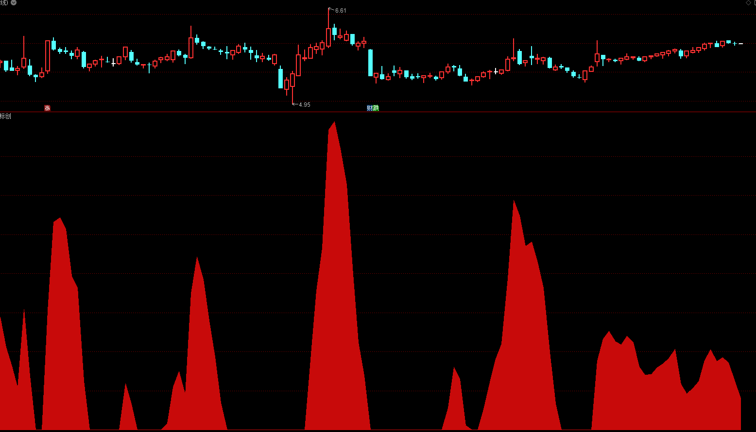 主力进场 := IF(动量强度 >= 0, 动量强度 * 3, 0), COLORRED;