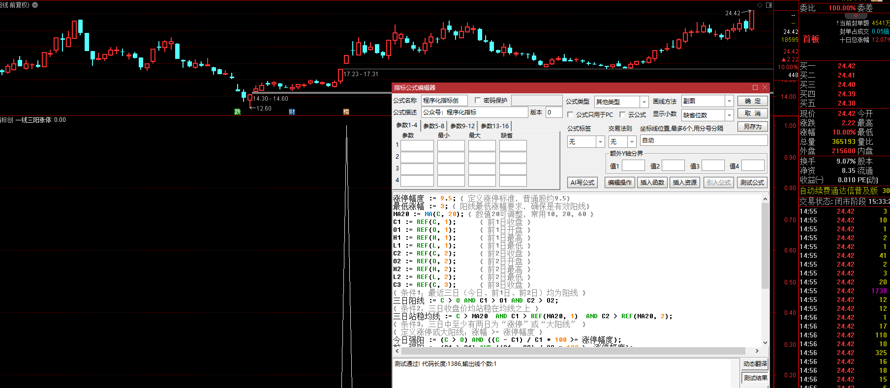 涨停幅度 := 9.5; { 定义涨停标准,普通股约9.5}