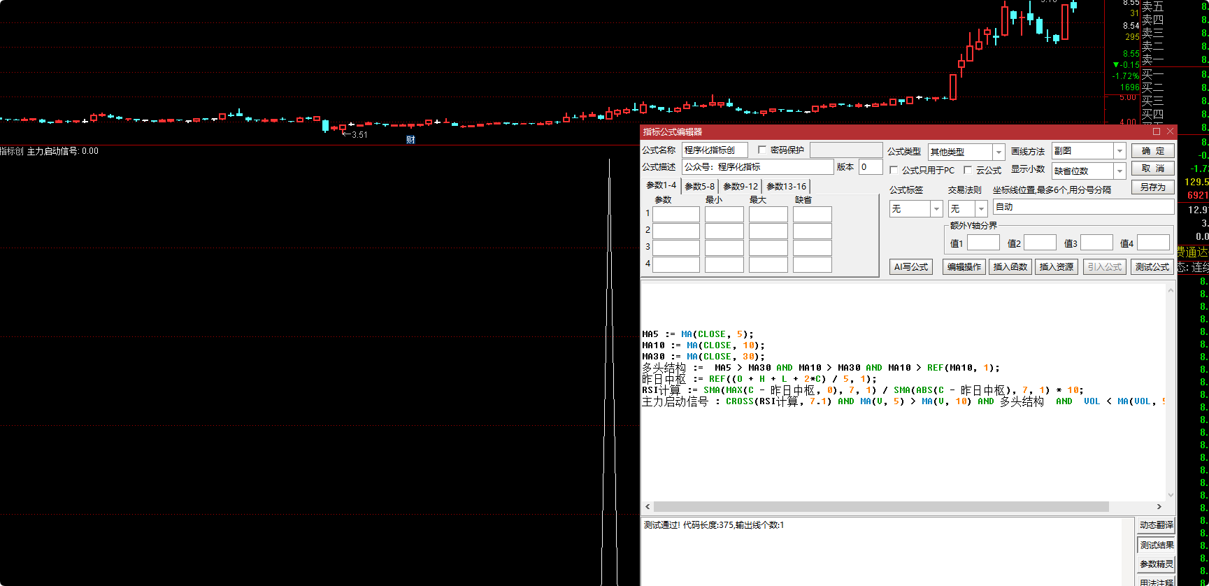 主力启动信号 : CROSS(RSI计算, 7.1) AND MA(V, 5) > MA(V, 10) AND 多头结构 AND VOL < MA(VOL, 5) * 1.5;