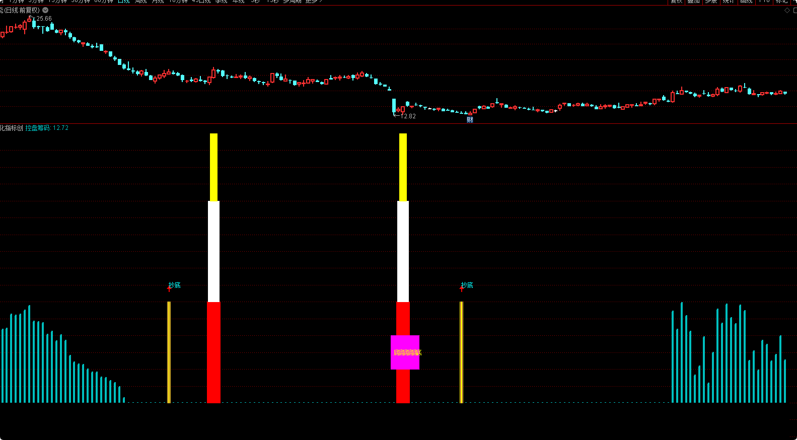 绝对底:=IF(快到底>0 AND CROSS(上帝,0),30,0),LINETHICK2,COLORMAGENTA;