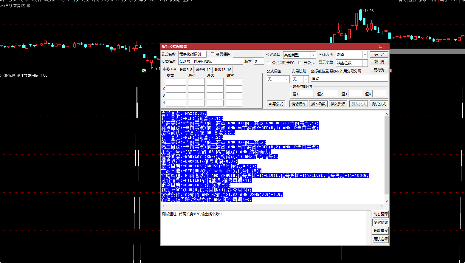 高点回踩:=当前高点>前一高点 AND 当前高点<=REF(H,1) AND H>当前高点;