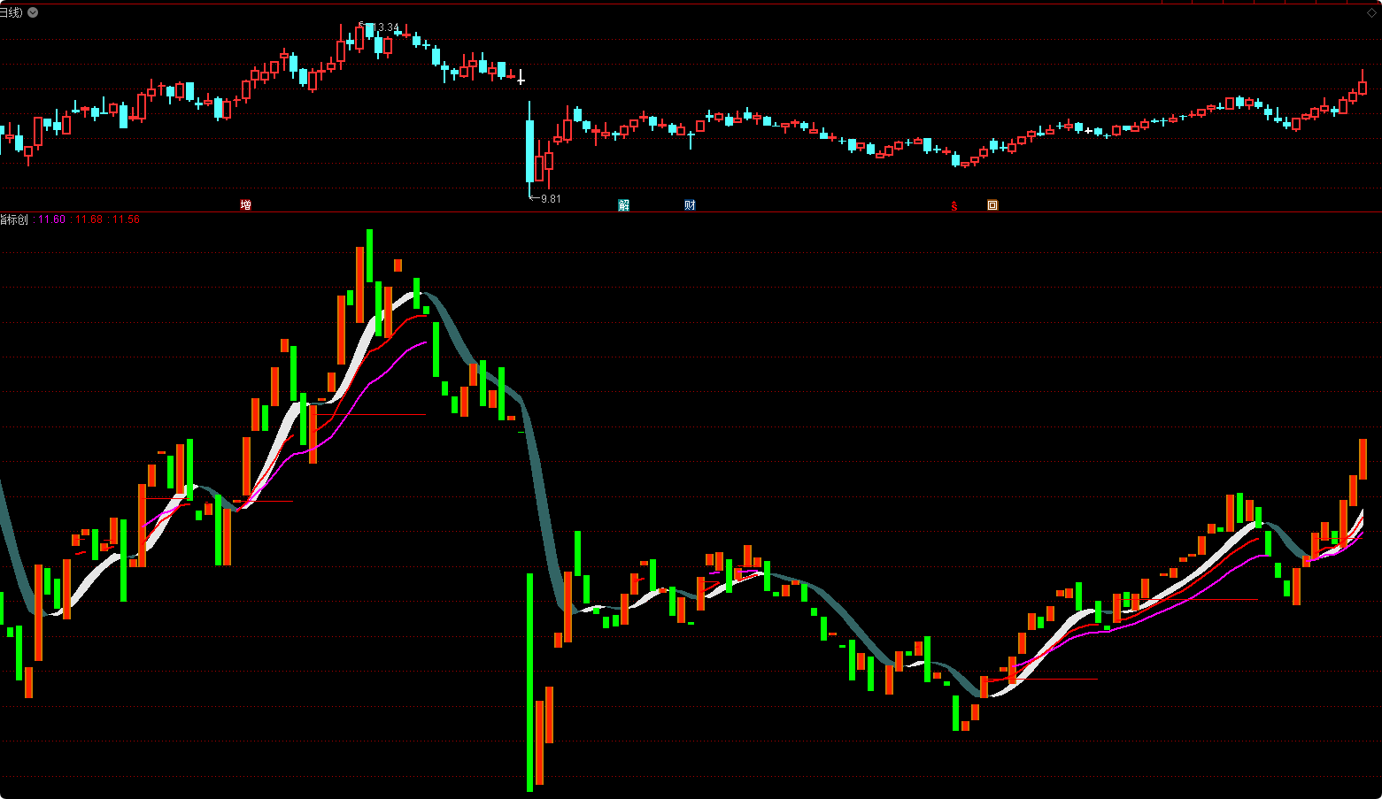 动态支撑位:金叉出现后,标记当日“中枢价”为支撑,后续持续跟踪是否被触及。