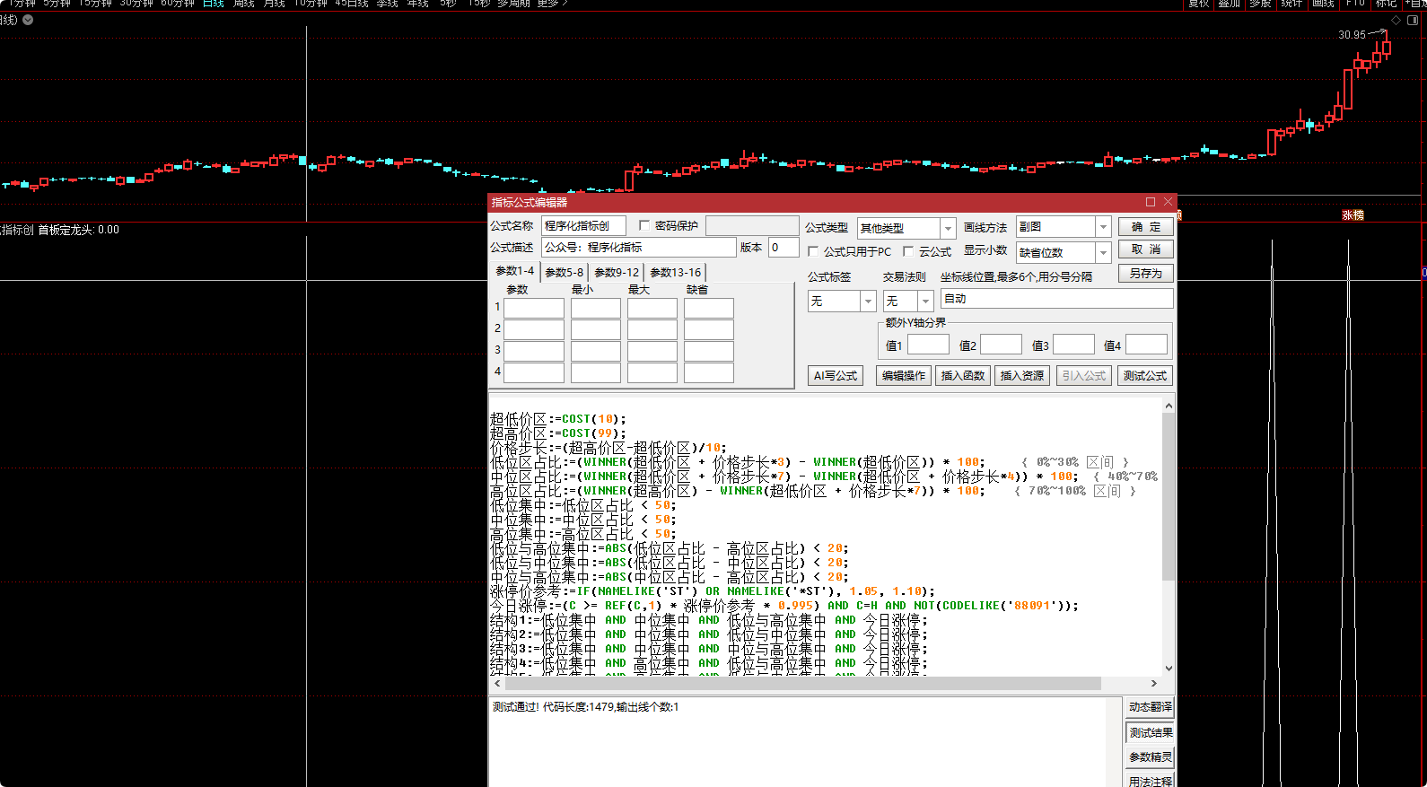 涨停价参考:=IF(NAMELIKE('ST') OR NAMELIKE('*ST'), 1.05, 1.10);
